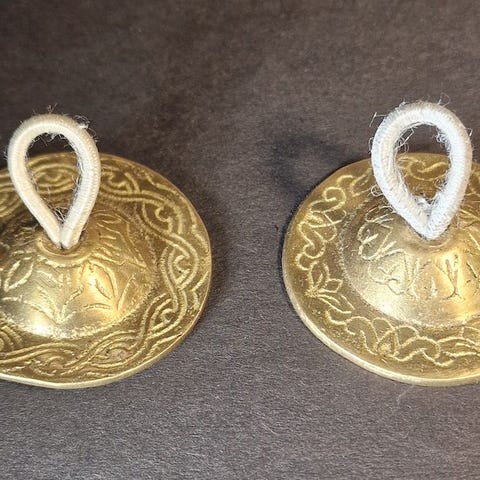Hyväkuntoisia, luultavasti messinkisiä sormisymbaaleja 4kpl eli 2 paria. Näitä käytetään itämaisessa tanssissa. Ovat jääneet vähälle käytölle eli kuminauhat ovat vielä napakat. Nouto Niipperistä tai postitus, jolloin ostajalle kulut.