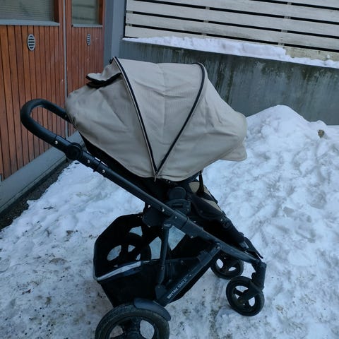 Annetaan Brion vaunukoppa + rattaat. Vaunukoppa on pesty , mutta rattaat eivät. Rattailla pääsee eteenpäin mutta toinen rengas jouduttiin vaihtamaan ja oli liian iso, joten siksi suosittelen kakkos rattaiksi esim parvekkeelle. Mahdollisesti jos löytyy Brion oma rengas niin saa toimivat rattaat , Vain nouto .