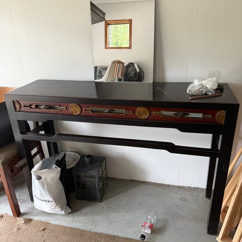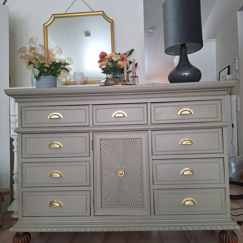 Myynnissä vaaleanharmaa shabby chic -tyylinen lipasto, senkki .