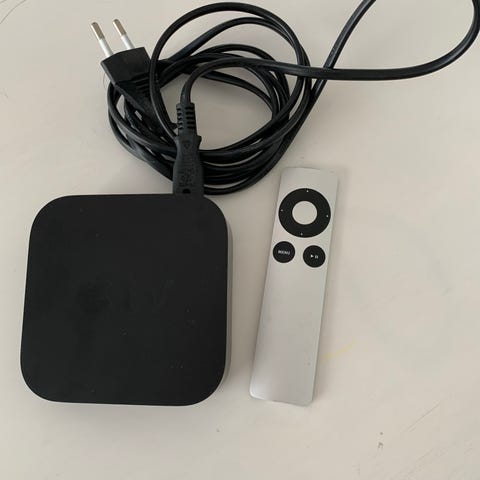 Apple TV mediasoitin musta. Laitteessa HDMI-liitäntä, optinen äänilähtö, verkkoliitäntä sekä virtaliitäntä. Mukana kaukosäädin. Soveltuu television liittämiseen verkkoon ja suoratoistosisällön toistamiseen yhteensopivien palveluiden kautta.