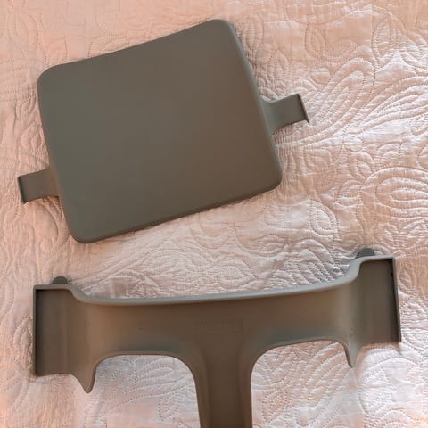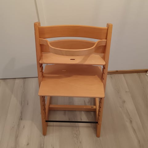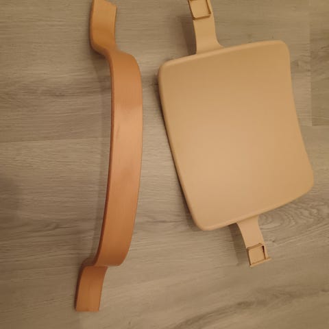 Hyvässä kunnossa oleva stokke tripp trapp Baby set ( muovinen selkänoja + puinen turvakaari ja haararemmi)