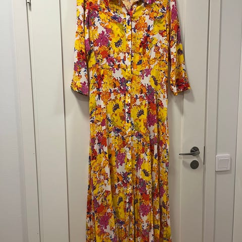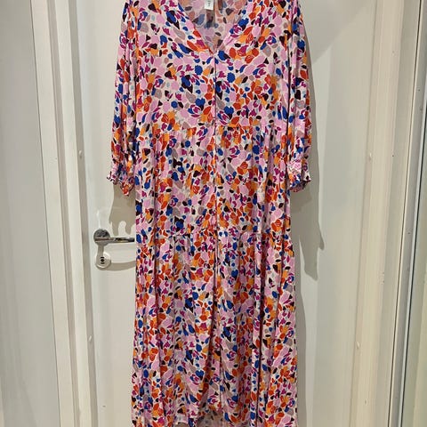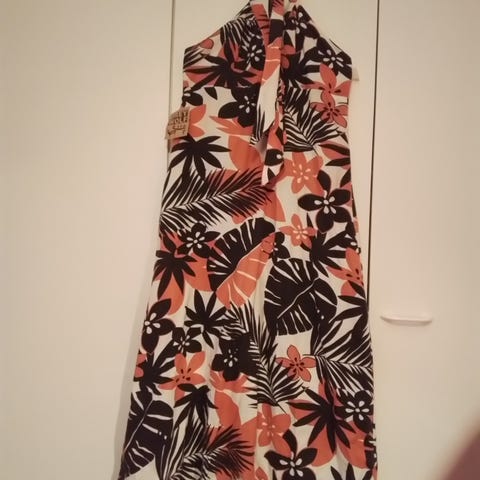 Uusi vasleansininen mekko, kokoa XL. 50% pellavaa ja 50% viskoosia. 2 taskua ja vyö. Napitus helmaan saakka. OVH 89,99€.