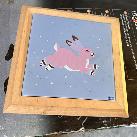 Suloinen Pentikin keramiikkaa oleva pupu taulu kooltaan (kehyksien kanssa ) 20x20 cm