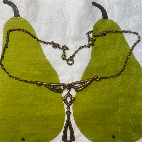 Korun pituus n.44cm, säädettävissä periaatteessa mihin pituuteen haluaa. Kuvissa esimerkkejä kaksinkerroin laitetusta korusta.
