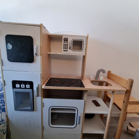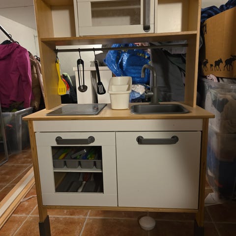 Ehjä, leikitty leikkikeittiö. Yleisilme siisti vaikkakin muutama pieni kolhu.