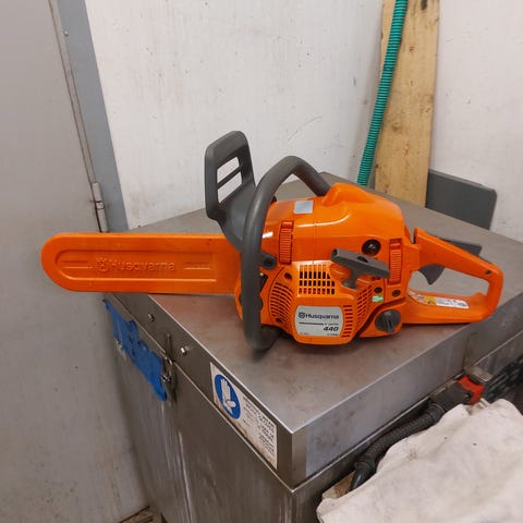 Polttomoottori raivaussaha. Kerran käyntiin kokeiltu. Ei ole ollut käyttöä.