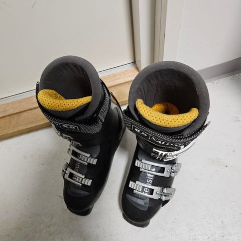Lange merkkiset laskettelumonot (Lange on tunnettu italialainen laskettelu kamppeiden valmistaja). Monojen sisämitta 27.50 cm eli vastaa n.41-42 kokoa karkeasti arvioituna. Ehjät monot (normaalia käyttöjälkeä ulkopinnoilla: niillä ei mitään vaikutusta itse monojen käyttöön mutta otettu hinnassa huomioon) kaikki lukot ja nauhat yms. kunnossa. Hinta 60 e