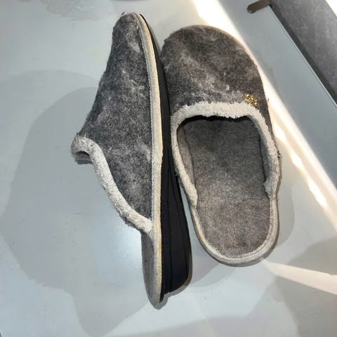 Harmaat villatohvelit