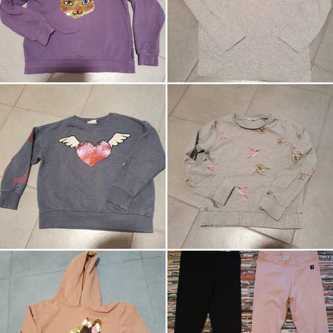 Uutena ostetut, yhdellä lapsella käytettyjä vaatteita.