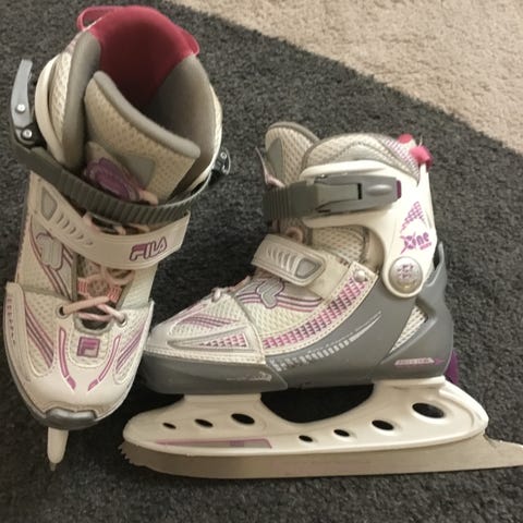 Lasten luistimet suoraan kenkiin kiinnitettäviksi koossa 24-31. Todellä nopeat kiinnittää ja koon muuttaminen hyvin yksinkertaista. Näillä on yksi lapsi oppinut hyvin tasapainon jäällä.
