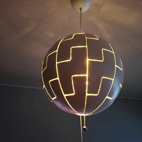 Myydään siisti ja toimiva Ikean PS kattovalaisin, väri valkoinen/hopea. Halkaisija 35cm.