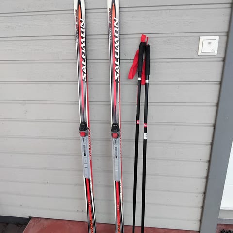 Salomon perinteisen tyylin maastohiihtosukset pitokarvalla. Suksissa on pohjassa valmiit pitokarvat, jotka tarjoavat pidon ilman voitelua. Sopivat perinteiseen hiihtoon laduille. Väri musta ja sininen. Suksissa siteet valmiina NNN. Käytetty pari kertaa.