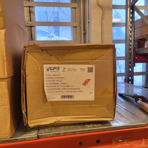 Sisältö: Läpivienti, 2K-aluskatteen tiiviste, ruuvit ja asennusohjeet.