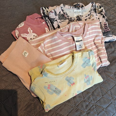 Vaatepaketti (poika) vauvalle. Sisältää fleecesetti, unipussi, 8x housut, 5x body, adidas t-paita, hihaton body, sukkahousut x2, 2x yöpuku, kypärälakki, collegepaita, kaksi pussia sukkia 0-4kk. Perus siistiä käytettyä vaatetta. Sekalaisesti H&M, Name it, Newbie, Lindex, Lupilu...yms. Nouto tai postitus.