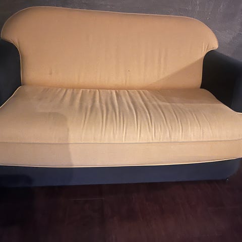 Laadukas ja jämäkkkä sohva. Istuintyynyn päälinen on kulunut puhki.