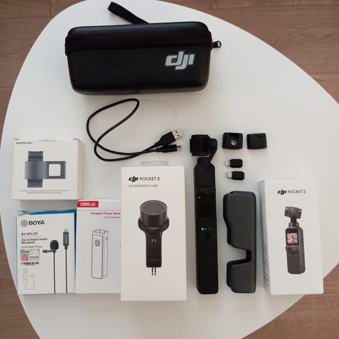 Varakamerana käytetty Osmo Pocket. Käytön jälkiä on, kts. kuvat. Kaikki toimii, akunkeston testasin 1080p/60fps -videolla jota yhdellä latauksella 58 minuuttia.