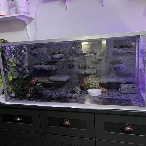 Viikon käytössä ollut uutena ostettu lasinen terraario, sopii jyrsijöille. Mitat 100x45x45