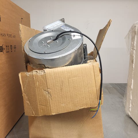 Kyseessä on alkuperäinen Swegon-varaosapakkaus, joka sisältää energiatehokkaan puhaltimen asennustarvikkeineen. Tämä malli on tarkoitettu koneen L-puhaltimeksi (vasen puoli).