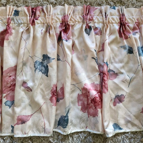 Laskoskappa satiinia (sidos), materiaali polyesteria. Himmeäkiiltoinen ruusukangas, pohjaväri samppanja. Valmiiksi laskostettu leveys 370 cm, korkeus 57 cm. Myös muita leveyksiä saatavilla (135 cm, 200 cm, 220 cm, 230). Näistä omat ilmoitukset, mutta voi yhdistää. Nouto tai ToriDiili.