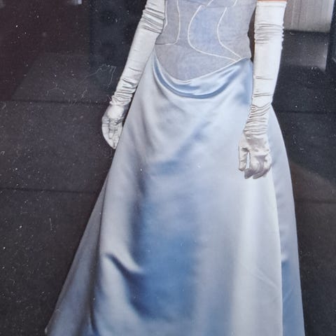 Kimalteleva ja kaunis sininen mekko. Koko 36 ja sopii n. 160-165 pituiselle. Mukana vannehame sekä pehmeä bolero.