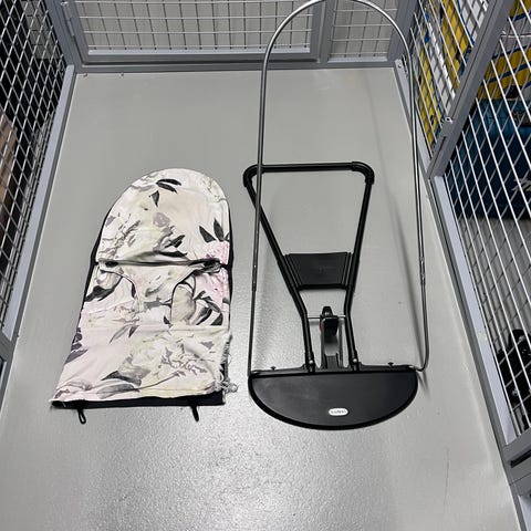 Käytetty mutta edelleen ok kuntoinen ja toimiva. Tärinä toiminto ja lelukaaressa musiikki ja valot, kaikki toimii. Selkänojaa saa säädettyä kolmeen eri asentoon. Miinuksena että valjasosan remmit haurastuneet ja katkeilleet, näistä kuva erikseen.