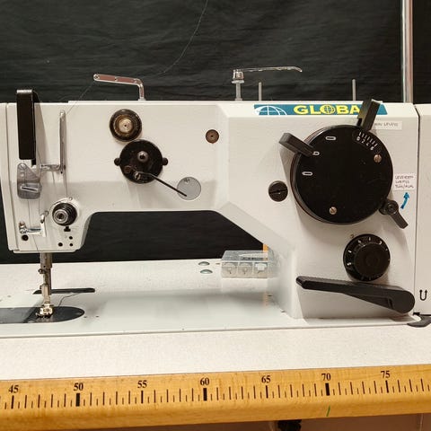 Juki Siks-sak suora ommelkone. Uuden veroinen, valovirralla toimiva kone. Vaatii langnkatkaisuun paineilman.