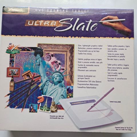 mukana tulee alkuperäinen pakkaus ja kaikki osat eli itse levy, piirtokynä, kynäkotelo, johdot, hanska, levyn tuki / teline ja kaikki kynän vaihtokärjet.