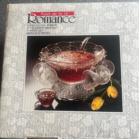 12 mukeja ja 2 eri kokoista boolimaljaa. Ei käytetty. Lasia.