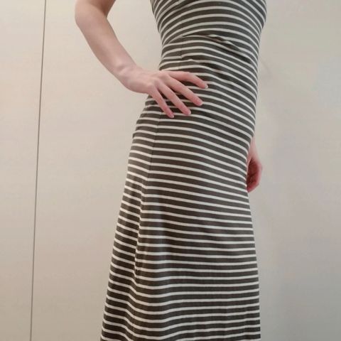Sinivalkoraitainen joustava mekko, mukava päällä