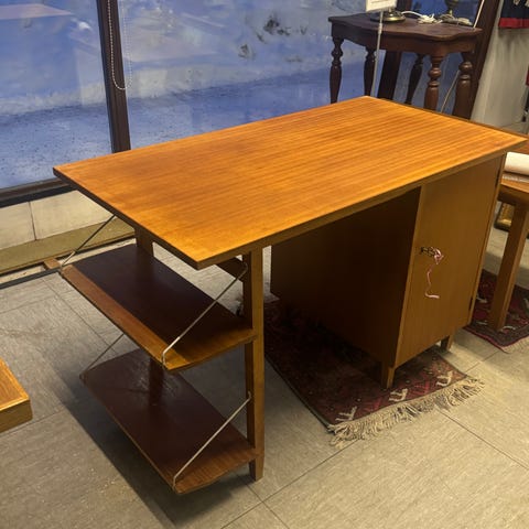 Pieni vanha ,50- luvun teakinen kirjoituspöytä. Näppärän kokoinen. Pientä patinaa. 6 kpl laatikko ja. Kuljetus järjestyy