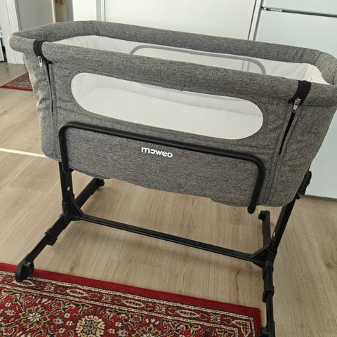 Kätevä sivuvaunusänky, jossa laskettava laita sekä heijaus- ja kallistusominaisuus. Sänky tarkoitettu 0-6kk ikäiselle, max9kg. Mukana myös kiinnikehihnat isoon sänkyyn sekä säilytyspussi. Kiinnikehihnat eivät ole olleet koskaan käytössä, koska sänky on pysynyt riittävän hyvin sängyssä kiinni ilmankin. Patjan päällä ollut käytössä kosteussuoja, joten patja on moitteettomassa kunnossa. Patjassa pestävä päällinen myös. Muutenkaan en löytänyt moitteita sängystä.