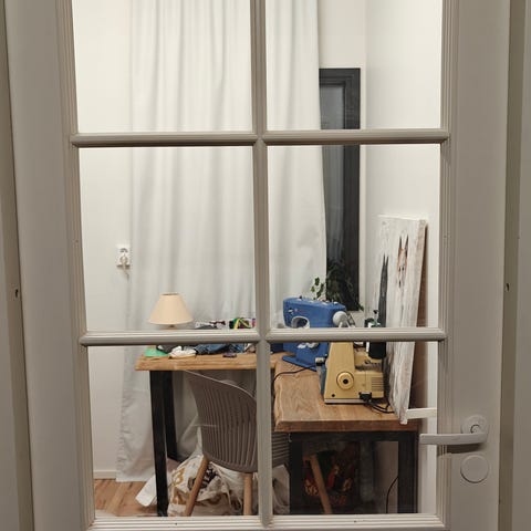 Käytössä olleita väliovia. Ehjiä kaikki mutta pieniä käytönjälkeä löytyy. Osassa ovissa kahvat paikoillaan.