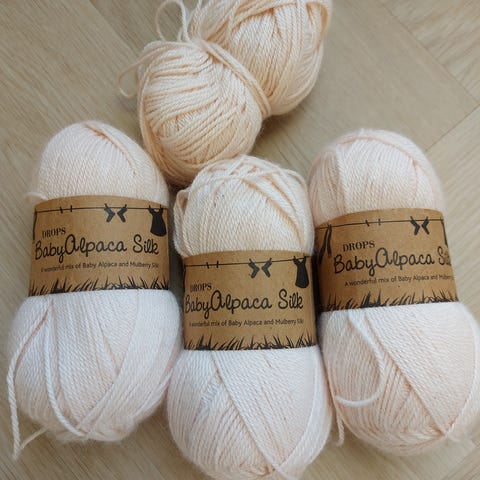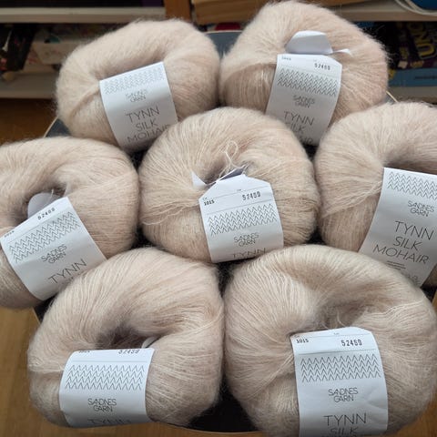 Yhteensä 6 kerää silkkimohair lankaa. Väri Blossom, joka taitaa olla poistuva väri.