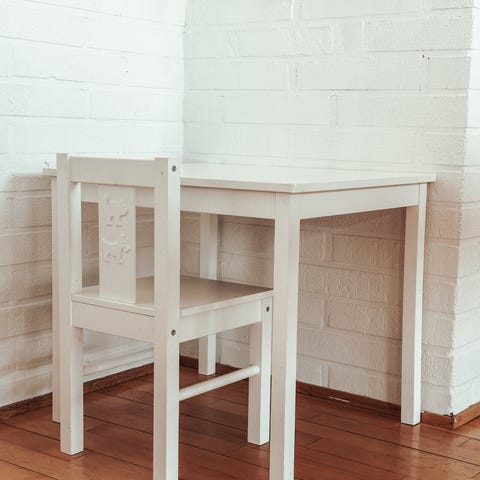 Toimiva, mutta jo naarmuja nähnyt hoitopöytä.