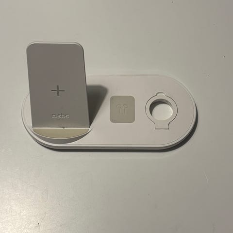 Lataustelakka jossa saa ladattua apple watch, iphone 14 puhelimista eteenpäin tai magsafe kuorilla sekä langattomalla latauksella tuetut airpods kotelot. Mukaan usb C piuha millä lataustelakan saa verkkovirtaan.