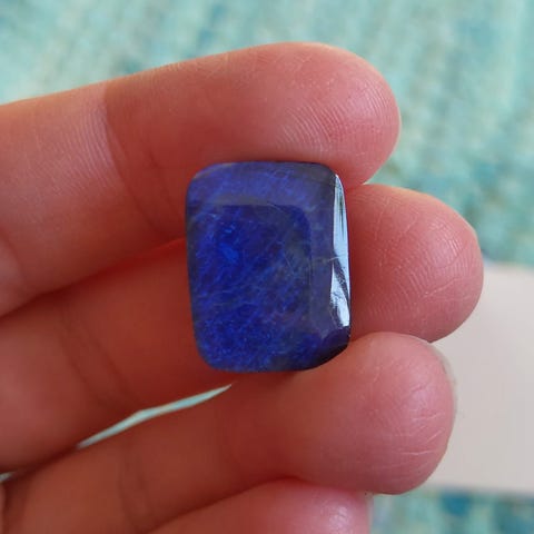 Pala synteettistä granaattia. LuAG hehkuu voimakkaasti uv-valossa (myös päivänvalossa jonkin verran). Tästä voisi viistehioa hienon korukiven. Paino 3,84g.