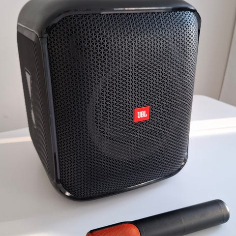 JBL PartyBox 100 on kannettava Bluetooth-kaiutin, jossa on integroitu LED-valoshow etupaneelissa. Kaiuttimessa on yläosassa ohjauspaneeli, josta voi säätää äänenvoimakkuutta, toistoa ja valotehosteita. Laitteessa on kantokahvat helpompaa siirtämistä varten. Sopii musiikin toistoon esimerkiksi kotona tai pienemmissä tilaisuuksissa Bluetooth-yhteyden tai muiden liitäntöjen kautta. Kuvissa näkyy myös irrotettava akkuyksikkö, joka mahdollistaa langattoman käytön akun varassa. 1kk vanha ovh 400e olkt 2 kertaa kokeiltu valtacat bassotehot ja äänet ha valoefektit ja liitännät voi yhdistää vaikka kitaran tai lisää kaiyttimen tosi kätevä akun kesti 12 tuntia