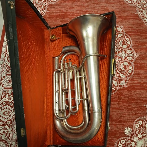 Thomann EB 882L, SUPERIOR Eb-tuba, 4 venttiiliä 3+1, kello 480 mm, korkeus 89 cm, pehmeä laukku. Uutena ostettu, harrastelijalla käytössä 6 vuotta.