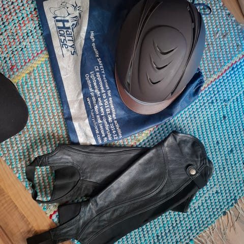 Hyväkuntoiset käytetyt ratsastustarvikkeet ja - vaatteet.