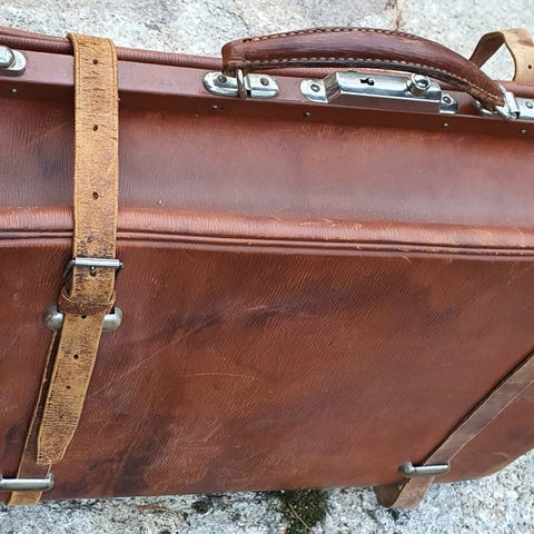 kauppias perheen vanhoja laukkuja ja kenkiä.