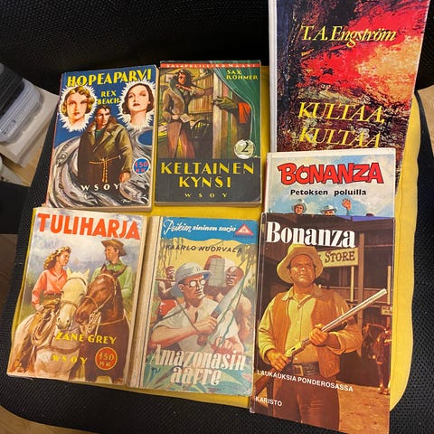 suomeksi ja ulkomaan kielillä vanhoja kirjoja kaupan alasta, eri laki aiheisia kirjoja, talous kirjoja, jne....