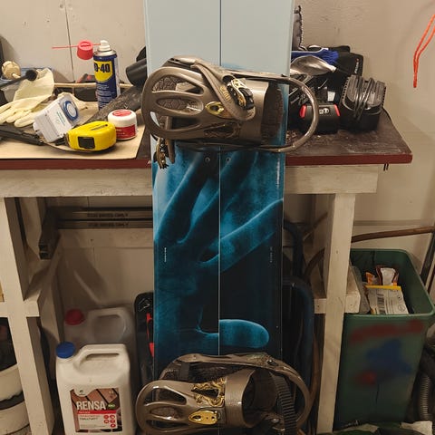 Ikäisekseen hyväkuntoinen ja ehjä Forum lumilauta (pituus 158,5) ja Salomon siteet (koko L). Vakaa hyvä peruslauta rinteeseen tai puuterille. Ollut jo vuosia vähällä käytöllä, edellisen huollon jäljiltä jäi varastoon.