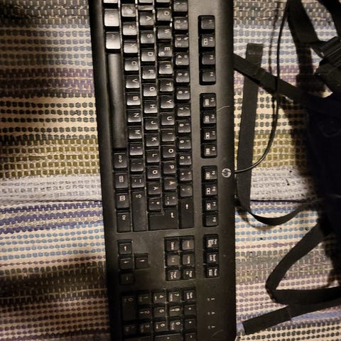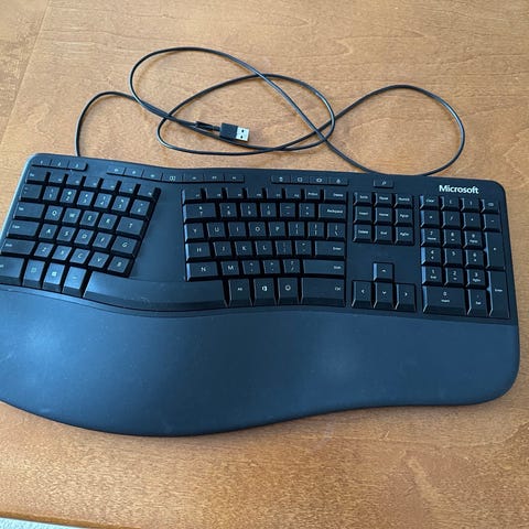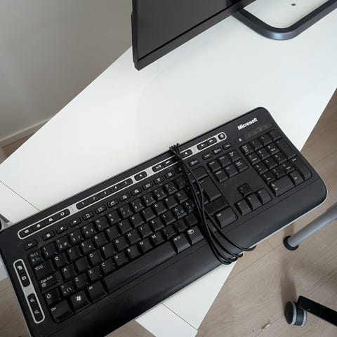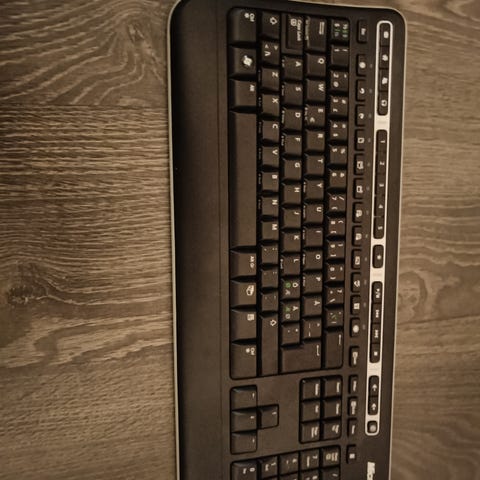 Hyväkuntoinen ja toimiva langallinen usb-näppäimistö, Microsoft wired keyboard 600. Kätevät napit musiikin volyymin säätämiseen.