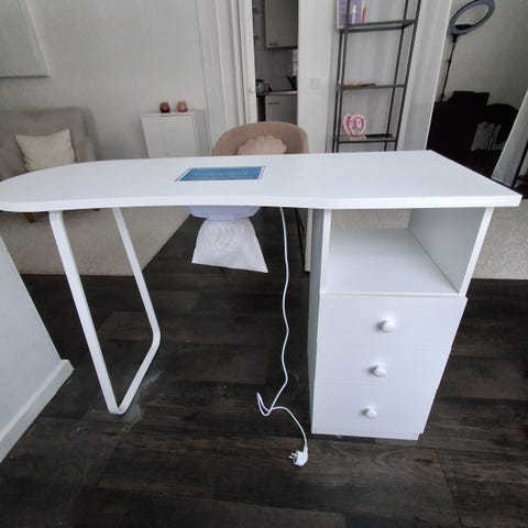 Pöydässä erinomainen imuri sisällä ja paljon säilytys tilaa.