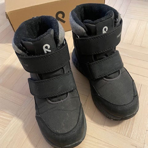 Vedenpitävät kengät, joiden päällinen on synteettistä materiaalia ja tekstiiliä. Tarranauhasuljenta ja joustavat nauhat. EVA-pohja kierrätettyä kumia. Irrotettava pohjallinen ja heijastavat yksityiskohdat.Reima Hiipien ReimaTec -kengät ovat vedenpitävät, vuoraamattomat jalkineet. Päällinen on synteettistä materiaalia ja tekstiiliä. Tarrakiinnitys.Kenkien kylmäeristys on testattu -10 °C:seen asti, ja niissä on vedenpitävä rakenne ja teipatut saumat.Pohjallinen on irrotettava, kun taas EVA-välipohja tekee kengistä kevyet.