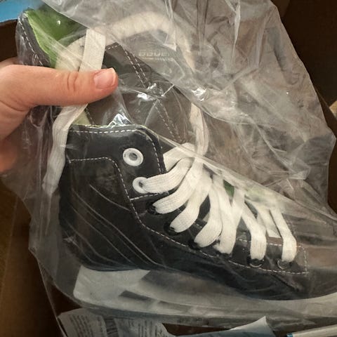Bauer X-LS JR - lasten jääkiekkoluistimet. Koko 33,5 (vastaa koko 1, pituus 21 cm). Väri pääosin musta, valkoisella teräkiskolla ja vihreillä yksityiskohdilla. Soveltuvat jääkiekkoharjoitteluun ja yleiseen luisteluun lapsille. Perinteinen nauhakiinnitys ja tukeva varsi jalan tukemiseen jäällä. - KÄYTTÄMÄTÖN ja alkuperäisessä pakkauksessa.