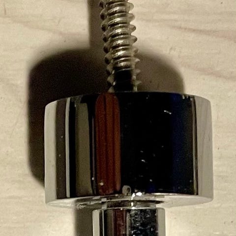 Uusi valkoinen niittikuosinen wc-harja. Kokonaispituus n. 38 cm, halkaisija 10 cm.