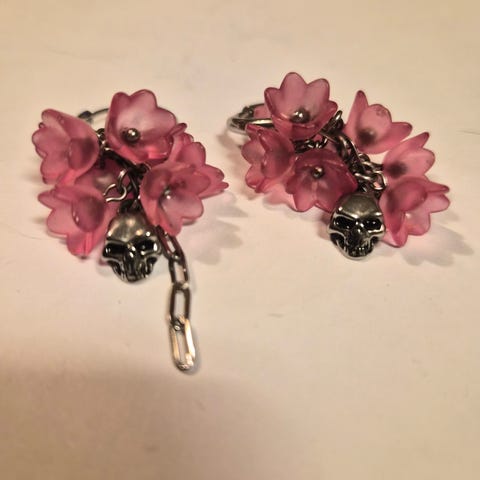 Pääkallo mustilla kukilla oleva one size sormus 30€