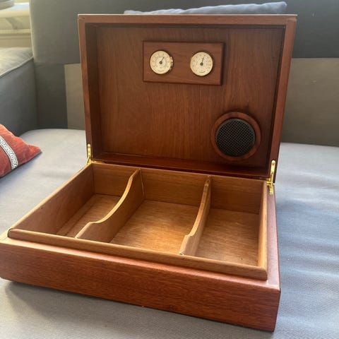 Mukana käyttöohje, sikarikirja ja neljä taskukoteloa