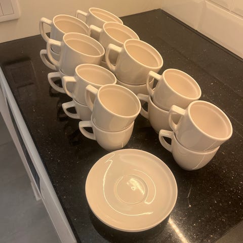 Myydään vähän käytetty Kermansaven Oliivi kahviastiasto 4:lle. Astiastoon kuuluu kahvikupit, asetit, leipälautaset, kermakko ja sokerikko. Uutta vastaavassa kunnossa, ei naarmuja. Voidaan myydä myös osissa, hinta sovitaan erikseen.